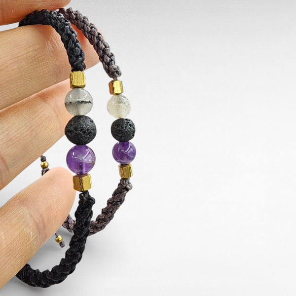 - Boletes de pedres semiprecioses de quars amb turmalina, roca volcànica, i amatista.
