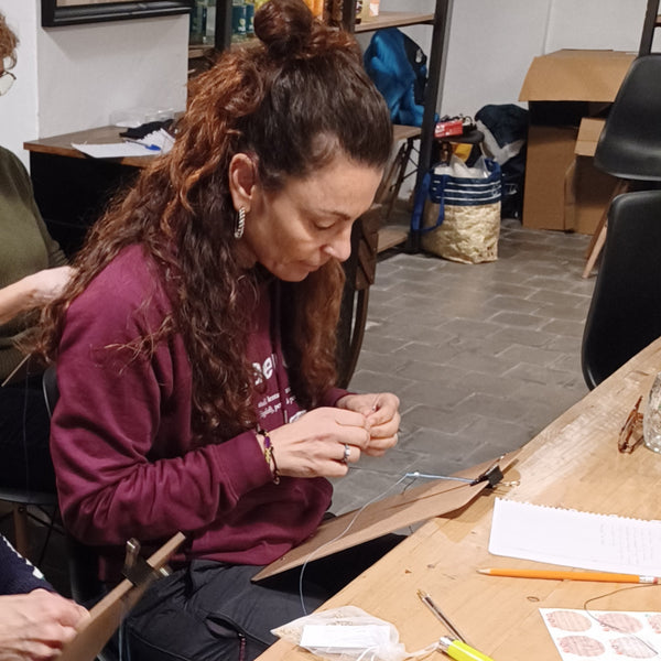 Aprendemos a familiarizarnos con los hilos practicando nudos de micro macramé y te llevas una joya hecha por ti de principio a fin.